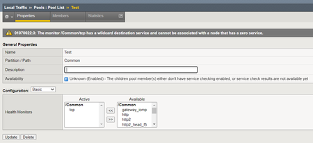 service port 0 is represent any service, pool member tcp and udp monitor can not use service port 0(gateway_icmp can use service port 0), if pool member service port has a lot, recommand you to use gateway_icmp monitor, too many ports detected will also degrade the performance of the device: