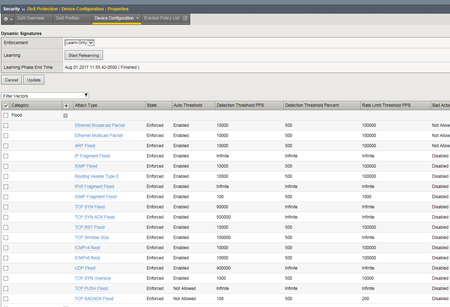 I was under the impression initially that if you had these dynamic signatures set to learn-only you weren't going to drop traffic. I have set all of these vectors to enforced and it looks like the ev...