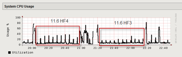 Actually all services are running stable with 11.6 HF4 far, but of course CPU usage statistics are approx. 20% higher with 11.6 HF4 than before upgrade!