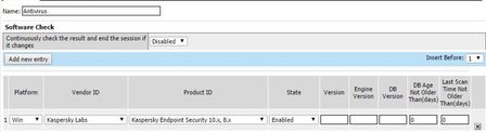 I have a issue :S with the antivisus Karspersky, when I select in the policy that accept the users with "Kaspersky Endpoint Security 10.X, 8.X" antivirus it's no possible to stablish...