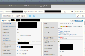 above the URI there is violation name and i can find why the request has blocked. but previous screenshot doesnt show any violation name(for example if it is an attack, what is the signature id and ...)