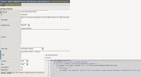 Position Field Description **0 Violation** string that contains list of comma separated violations, see below the rquest side and response side violations for value options 1 support_id Unique id given for a transaction 2 web_application ASM Web application name 3 Severity it will be the most critical severity of all the transaction violations, possible values: Emergency, Alert, Critical, Error, Warning, Notice and Informational 4 source_ip Client IP. (in case trust xff option is enabled on the policy, this will be the xff ip **5 attack_type** string that contains list of comma separated attack types, see below for value options 6 request_status Can be “blocked” or “alarmed”Second clue: ATTACK_TYPE_INFORMATION_LEAKAGEInformation Leakage