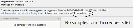 We have 16.1.3 version firmware. Recently (1 week) I configured an ASM policy with no trusted IP defined. But in some ASM learning suggestions, I can see ' 1 trusted sources'. I do not have samples ...
