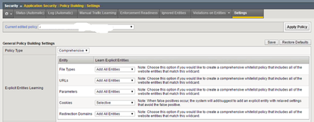 Nov 07, 2016Are you sure that the learning mode for parameters is really "Add All Entities" and not "Selective"? It's not clear from your first sentence. If you changed the learning mode for parameters at any point, make sure you clicked Save and Apply Policy. Also, if you view the Learning and Blocking settings page, are the Learn and Alarm checkboxes for "Illegal Parameter" selected? If you have four policies, make sure you are editing the correct one.