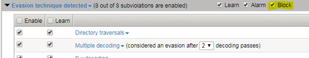 how can I set blocking-setting for (for example) "Evasion technique detected" to Block?