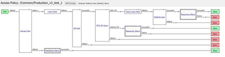 Hello, Below attached my APM workflow. I want F5 APM to automatically choose option 1 in the decision box after the user fails to choose option 1 or 2 in a stipulated time ( as per the diagr...