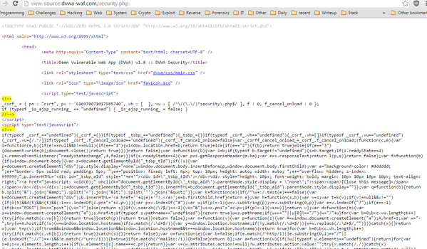 The request to security.php link without token is not blocked (file3.png)  All F5 Javascripts are commented out when viewing the source-code of the page (file4.png)  The F5 CSRF token not generated to the security.php link."I think he already did try what your suggestions because after he saw your comments, he sent me the information above. By the way, we don't know if there is any special tool installed on the web server but i will check it later.