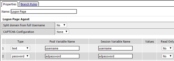 Here is our access policy, we use the custom variable name 'adpassword' to facilitate the use of another variable called 'password' in an alternative policy branch.