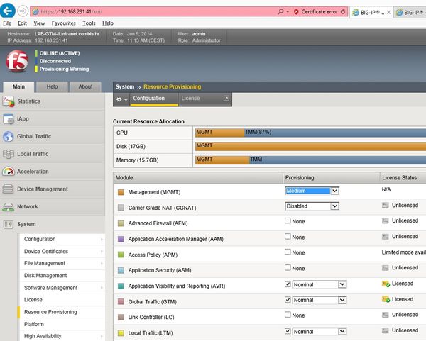 BIG-IP VE 11.4.1 HF3 LTM and GTM provisioning warning