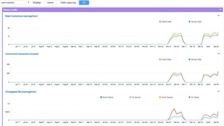 To be more precise and the reason why I'm asking is, that I wonder if and how recording these statistics data depends on the free disc space of the BIG-IQ itself (not the DCDs). Background: until end of last year the "/shared" partition of the BIG-IQ was full, as there were too much ucs-files from all of our BIG-IPs. After christmas, one BIG-IP cluster was removed, which released some GB (because all corresponding ucs-files where deleted as well). Additionally I increased this partition to 100GB beginning of January. And as you can see in the above screenshot, statistics data is available again since around that date!