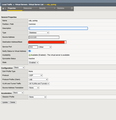 10.0.10.251:60134 10.0.10.101:5514 10.0.10.11:60134 10.0.12.112:5514 tcp 0 (tmm: 1) none none