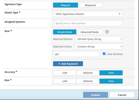 Hi, I have manually created custom Attack Signature Rule But the blocking is not working on Request URI but working on Request body and header. What am i missing here ? The URL we hit contain...