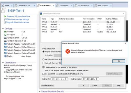 I am trying to connect from my laptop to the 1.1 interface on the BIG-IP (in vmware), I am not sure if it is an issue with BIG-IP of with vmware