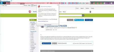 Someone answered to my question on devcentral and i got an alert for that. When i clicked on the alert, it gave a certificate error, i clicked on continue and got the "mismatched address" ce...