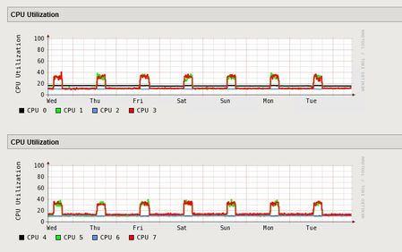 Take a look at the graph below. This is the 7 day overview of the CPU load on a i4600 cluster BIGIP with LTM, APM, ASM and AFM provisioned. But for now only LTM is configured with about ...