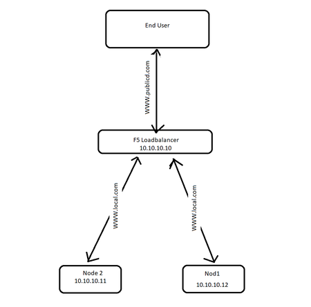 F5 has a feature to allow its pool members to be based off of a FQDN rather than an IP address. If you add your pool members as a FQDN node, this means you can have your public domain name resolve to the F5 virtual server address and then have that virtual server send requests to any server attached to your local domain name. The responses will look to the user as if they are coming from the public domain name. Hopefully this solution works for you.