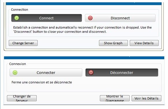 The French localization for the Change Server and Show Graph text does not fit the size of the buttons defined in the Edge Client: