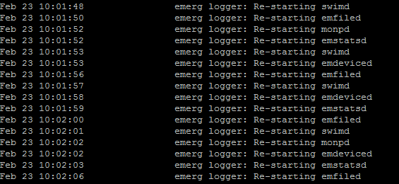 In the command line, the device is also continually restarting processes, as shown here.