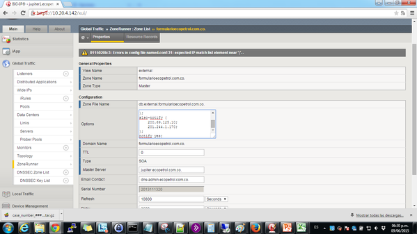 The BIG-IP GTM platform shows an error when add or update the configuration using the Zone Runner Utility. This is the error: