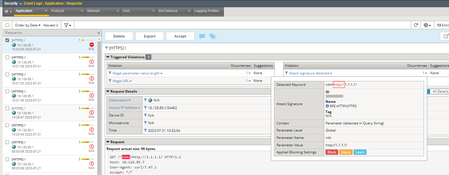 And the ASM Request Log shows the malicious request just passes.