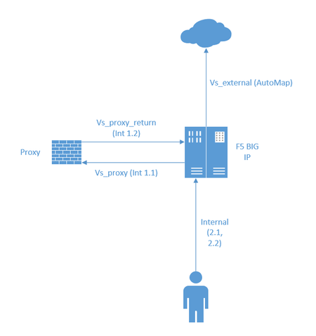 Users surf the web, and the traffic hits the F5 internal VLAN over a fiber-trunk(2.1 and...
