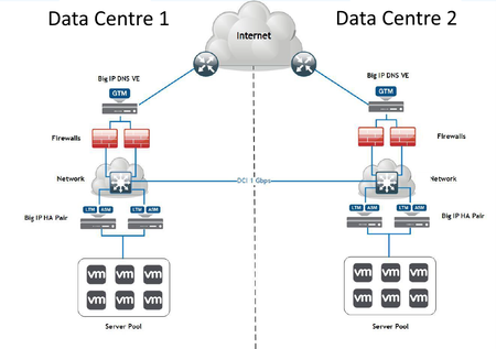 I have a new deployment, a pair of HA F5 LTM (Physical) and VE F5 DNS at each site. Configured as per this diagram: