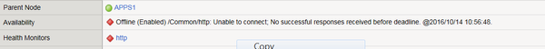 Guys, I have configured to nodes to have a http monitor. I can access the default port 80 http application form the server and also from my client. The moment I add these nodes to the pool. I don’t see it getting Green. The port 80 traffic is open, so I can browse on the server. Offline (Enabled) - Pool member has been marked down by a monitor From the server: I don’t see any firewall issues on the server. IIS is running on the server. How can I get the http monitoring working from F5. Any pointer is appreciated.
