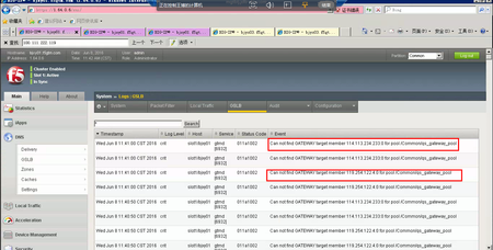 I have two Data Center "1.64.0.6" and "1.65.1.20" , "1.64.0.6" display "can't find GATEWAY target member 114.113.234.233 for pool/Common/qs_gateway_pool"; In qs_gateway_pool can't find 114.113...