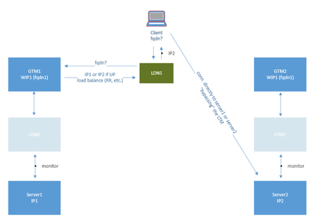 Hi, I am trying to figure out a way to use F5 BIG-IP GTM/DNS as a smart DNS server only. The idea is shown in the figure below. There a two data centers with GTMs, LTMs and servers as shown a...