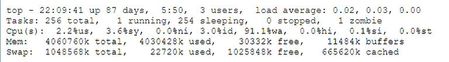 top - 23:19:40 up 16 days, 21:35, 2 users, load average: 4.01, 4.60, 3.71
