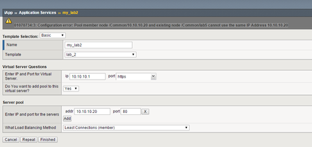 I have created iApp to create a pool, but whenever i use existing ip address as pool member ip i get the following error message as shown in picutre.