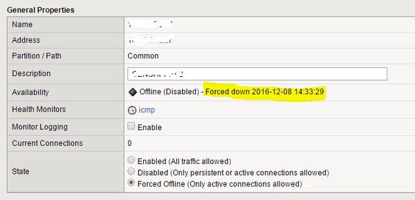 status.statusReason: { description: "/Common/https_443: No successful responses received before deadline. @2017/01/08 14:04:04. " },Unfortunately the information about date is missing in this property when the node is forced offline