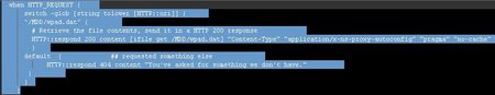 HTTP::respond 200 contain [ifile get wpad.dat] "Content-Type" "application/x-ns-proxy-autoconfig" "pragma" "no-cache"