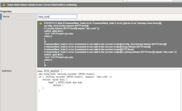 I tried creating this IRULE but getting Error.Attached the screenshot.