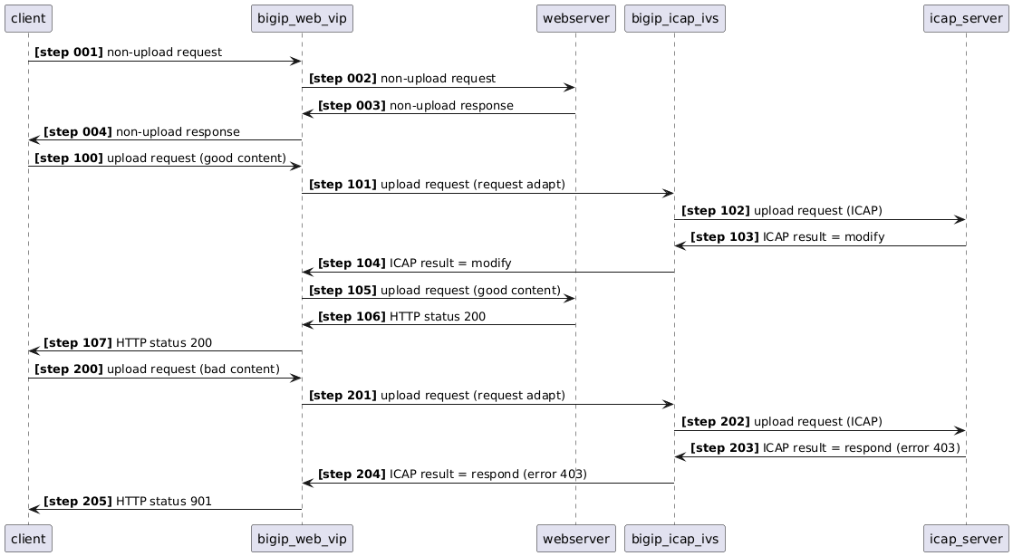 I'm facing the following problem with an ICAP setup: What we want is AV scanning of file uploads to a web page using ICAP on the BigIP. This is done by using a request adapt profile in conjunction with an internal virtual with ICAP profile. We want all POST requests to a specific upload path to be sent to an ICAP server that performs AV scanning. When finding an infected upload, the ICAP server will respond with an ICAP result "respond" (instead of "modify") and return an http 403 error page (we cannot change that behaviour). The upload (POST request) will not reach the webserver in that case. Up to that point, we could get all of this working properly.