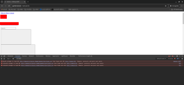 "Unsafe attempt to load URL http://tomcat/o/classic-theme/images/clay/icons.svg from frame with URL http://tomcat:81/. Domains, protocols and ports must match."