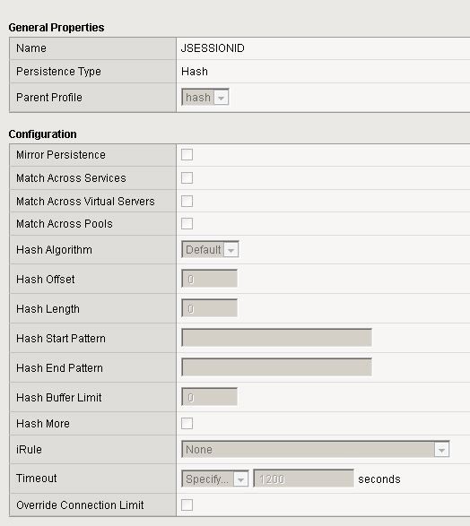 config root@(ve11a)(cfg-sync In Sync)(Active)(/Common)(tmos) list ltm virtual bar ltm virtual bar { destination 172.28.20.15:80 ip-protocol tcp mask 255.255.255.255 persist { hash { default yes } } pool foo profiles { http { } tcp { } } source 0.0.0.0/0 source-address-translation { type automap } vs-index 34 } root@(ve11a)(cfg-sync In Sync)(Active)(/Common)(tmos) list ltm pool foo ltm pool foo { load-balancing-mode predictive-member members { 200.200.200.101:80 { address 200.200.200.101 } 200.200.200.111:80 { address 200.200.200.111 } } } hash persistence with no irule root@(ve11a)(cfg-sync In Sync)(Active)(/Common)(tmos) list ltm persistence hash ltm persistence hash hash { app-service none mirror disabled rule none timeout 180 } generate 100 requests [root@centos20 ~] ab -n 100 http://172.28.20.15/ This is ApacheBench, Version 2.0.40-dev <$Revision: 1.146 $> apache-2.0 Copyright 1996 Adam Twiss, Zeus Technology Ltd, http://www.zeustech.net/ Copyright 2006 The Apache Software Foundation, http://www.apache.org/ Benchmarking 172.28.20.15 (be patient).....done Server Software: Apache/2.2.3 Server Hostname: 172.28.20.15 Server Port: 80 Document Path: / Document Length: 89 bytes Concurrency Level: 1 Time taken for tests: 0.766123 seconds Complete requests: 100 Failed requests: 0 Write errors: 0 Total transferred: 35100 bytes HTML transferred: 8900 bytes Requests per second: 130.53 [/sec] (mean) Time per request: 7.661 [ms] (mean) Time per request: 7.661 [ms] (mean, across all concurrent requests) Transfer rate: 44.38 [Kbytes/sec] received Connection Times (ms) min mean[+/-sd] median max Connect: 0 1 0.3 1 2 Processing: 4 6 2.8 5 20 Waiting: 3 5 2.8 5 19 Total: 4 7 2.9 6 21 Percentage of the requests served within a certain time (ms) 50% 6 66% 7 75% 7 80% 8 90% 9 95% 14 98% 20 99% 21 100% 21 (longest request) only 1 persistence record root@(ve11a)(cfg-sync In Sync)(Active)(/Common)(tmos) show ltm persistence persist-records all-properties Sys::Persistent Connections hash - 172.28.20.15:80 - 200.200.200.101:80 ------------------------------------------- TMM 0 Mode hash Value 0 Age (sec.) 38 Virtual Name /Common/bar Virtual Addr 172.28.20.15:80 Node Addr 200.200.200.101:80 Pool Name /Common/foo Client Addr 172.28.20.20 Owner entry Total records returned: 1 only 1 pool member is selected root@(ve11a)(cfg-sync In Sync)(Active)(/Common)(tmos) show ltm pool foo members --------------------------------------------------------------------- Ltm::Pool: foo --------------------------------------------------------------------- Status Availability : unknown State : enabled Reason : The children pool member(s) either don't have service checking enabled, or service check results are not available yet Monitor : none Minimum Active Members : 0 Current Active Members : 0 Total Requests : 100 Current Sessions : 0 Traffic ServerSide Bits In 325.6K Bits Out 492.0K Packets In 600 Packets Out 500 Current Connections 0 Maximum Connections 2 Total Connections 100 Connection Queue Pool Pool and members Number of connections queued now 0 0 Number of connections serviced 0 0 Queue head entry age (ms) 0 0 Maximum queue entry age ever (ms) 0 0 Maximum queue entry age recently (ms) 0 0 Average queue entry age (ms) 0 0 -------------------------------------------------------------- | Ltm::Pool Member: 200.200.200.101:80 -------------------------------------------------------------- | Status | Availability : unknown | State : enabled | Reason : Pool member does not have service checking enabled | Monitor : none | Monitor Status : unchecked | Session Status : enabled | Pool Name : foo | IP Address : 200.200.200.101 | | Traffic ServerSide General | Bits In 325.6K - | Bits Out 492.0K - | Packets In 600 - | Packets Out 500 - | Current Connections 0 - | Maximum Connections 2 - | Total Connections 100 - | Total Requests - 100 | Current Sessions - 0 | | Connection Queue | Number of connections queued now 0 | Number of connections serviced 0 | Queue head entry age (ms) 0 | Maximum queue entry age ever (ms) 0 | Maximum queue entry age recently (ms) 0 | Average queue entry age (ms) 0 -------------------------------------------------------------- | Ltm::Pool Member: 200.200.200.111:80 -------------------------------------------------------------- | Status | Availability : unknown | State : enabled | Reason : Pool member does not have service checking enabled | Monitor : none | Monitor Status : unchecked | Session Status : enabled | Pool Name : foo | IP Address : 200.200.200.111 | | Traffic ServerSide General | Bits In 0 - | Bits Out 0 - | Packets In 0 - | Packets Out 0 - | Current Connections 0 - | Maximum Connections 0 - | Total Connections 0 - | Total Requests - 0 | Current Sessions - 0 | | Connection Queue | Number of connections queued now 0 | Number of connections serviced 0 | Queue head entry age (ms) 0 | Maximum queue entry age ever (ms) 0 | Maximum queue entry age recently (ms) 0 | Average queue entry age (ms) 0