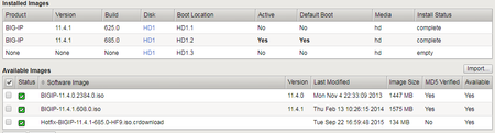 I have been trying to upgrade the BIG-IP 11.4.1 Build 685.0 Hotfix HF9 to the latest version but after importing the iso using the GUI the image is not shown in the available images so I don´t get to...