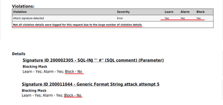 We have a query regarding to "Not all violation details were logged for this request due to the large number of violation details".