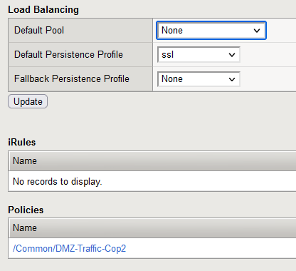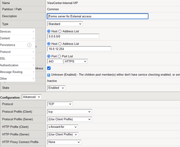 I have a outside firewall NAT for incoming 443 traffic on 96.103.236.222 that forwards that traffic to a LTM VIP 192.168.5.5 listening on 443.
