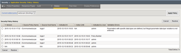 Create a security policy using third party vulnerability assessment tool output Application Language: UTF-8 Enforcement Mode: Blocking Security policy is case sensitive: ENABLED Differentiate between HTTP and HTTPS: ENABLED
