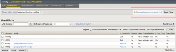 Let's try with setting 1. option(Applying integer to ID parameter) - Once I go back a step, to Security ›› Application Security : URLs : Allowed URLs I get a notice to apply policy. So, just doing UPDATE in previous step wasn't enough.
