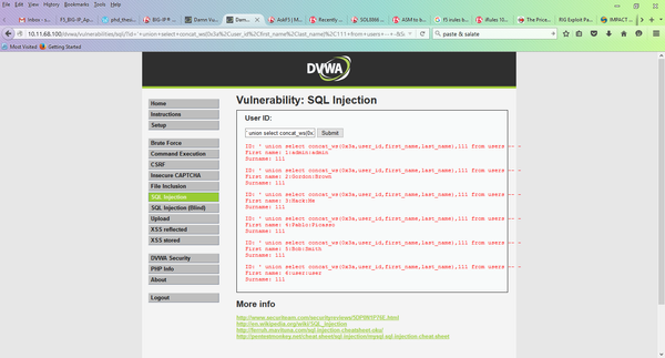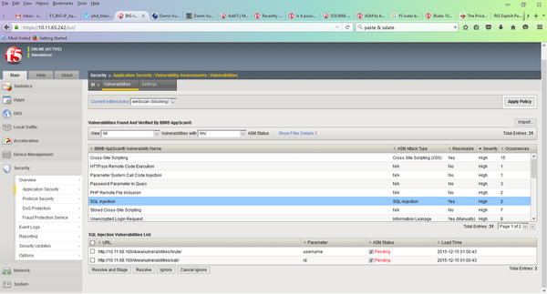 Now, when I go to vulnerable application and try the full exploitation string, it will be successfully as if no policy was ever set. In other words, WAF will stop working. Not to mention that single-quote is still not blocked. Even though WAF successfully blocked it the first time I imported XML scan results and mitigated SQL injection.