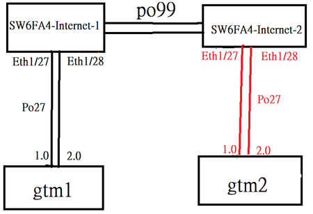 Oct 17, 2024The only thing I can glean from this setup is the trunk links between Po27 & SW6FA4-Internet1.... Could the ping traffic that's experiencing drops be hashed to a particular link in the port channel? *** Do during maintenance window *** if possible, disable one link between gtm1 & SW6FA4-Internet1. monitor ping loss, restore then disable the other link. You could have the traffic hashed onto one of the links in the port channel and its possible a bad patch.