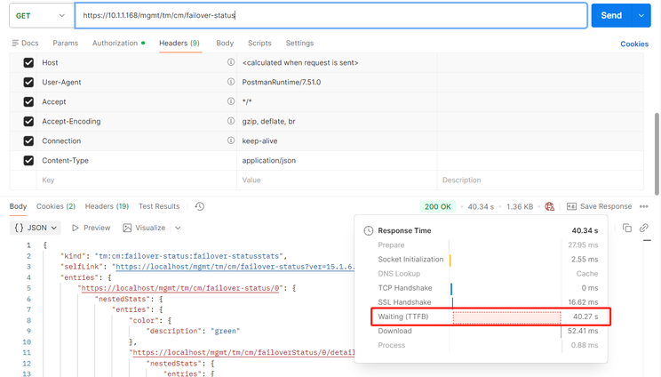 But I don't know what configurations in the original environment might have caused this problem. Does F5 have any configurations that cause internet access when calling a RESTful API?