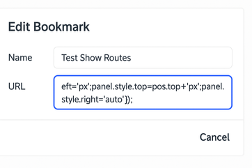 - Create a new bookmark and copy the next encoded JavaScript in the URL