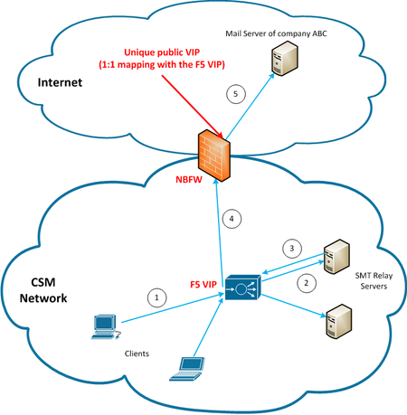 client-- F5 VIP-- SMTP Relay Servers (Incomming )