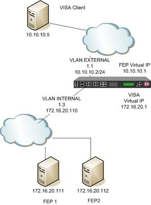 1. VISA Client(10.10.10.5) establish connection to F5 Virtual IP(10.10.10.1) , let’s say port 4000