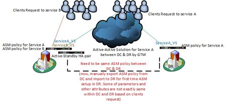 By using GTM, Active - Active Data Center is running in our environment and the separate ASM policy is applied to each data center. In DC, there are two ASM policy for each specific services but in D...