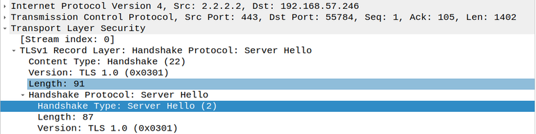 cURL from F5 to Virtual Server 1, get proper HTTP response and verify TLS 1 from SNAT address to 2.2.2.2